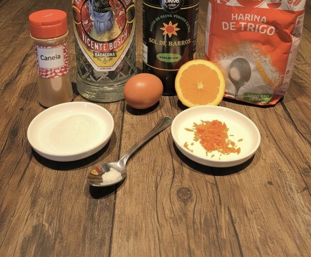 Es un dulce típico que se hace en carnaval, sobre todo en Galicia y León. El nombre varía según el lugar, pero está relacionado con la forma de las orejas de cerdo, la receta tradicional lleva manteca de cerdo pero nosotros la hemos cambiado por AOVE y también lo hemos usado para la fritura, que le aporta un sabor muy especial y una textura muy crujiente.