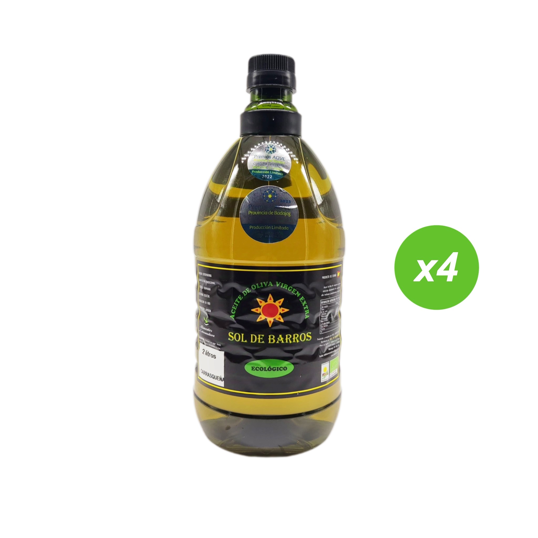 2023: Primer premio 🏆 a los mejores AOVE de producción limitada en la “VII edición de la Cata-Concurso de Aceites de Oliva Virgen Extra Provincia de Badajoz Cosecha Temprana 2023-2024” para nuestro AOVE ecológico SOL DE BARROS 100% Carrasqueña (Manzanilla).